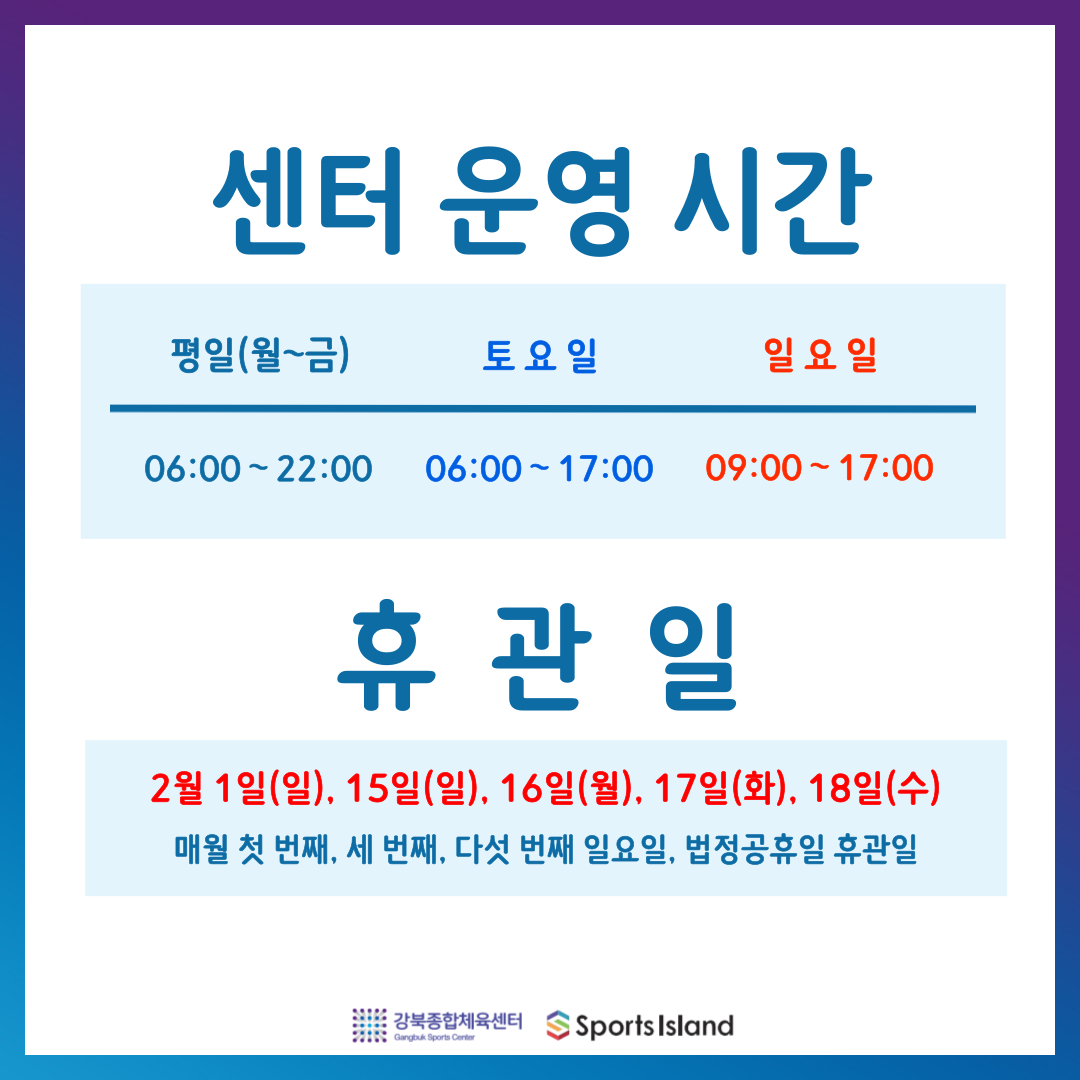 강북종합체육센터 2월 일정 안내