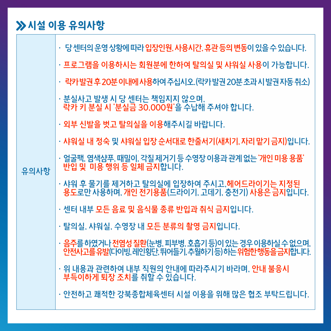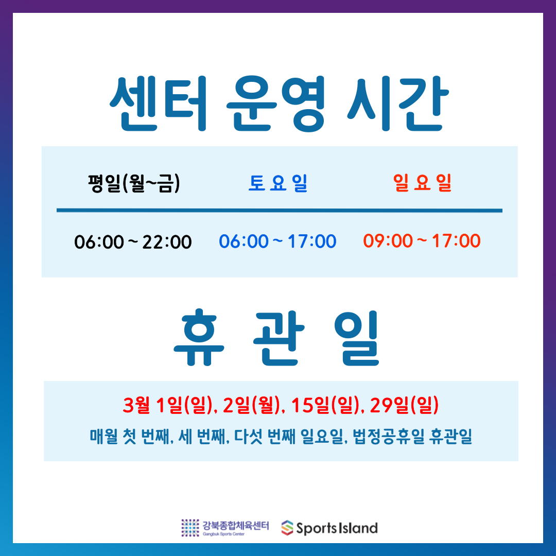 강북종합체육센터 3월 일정 안내
