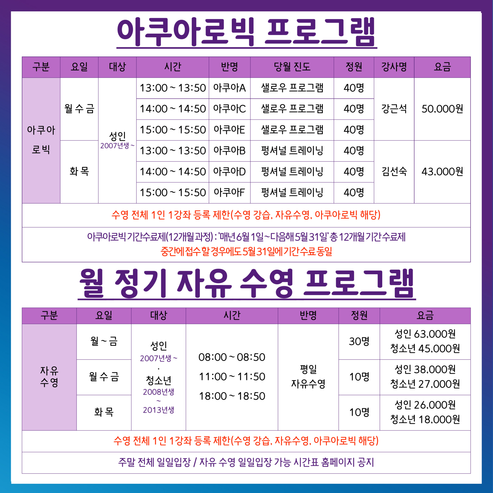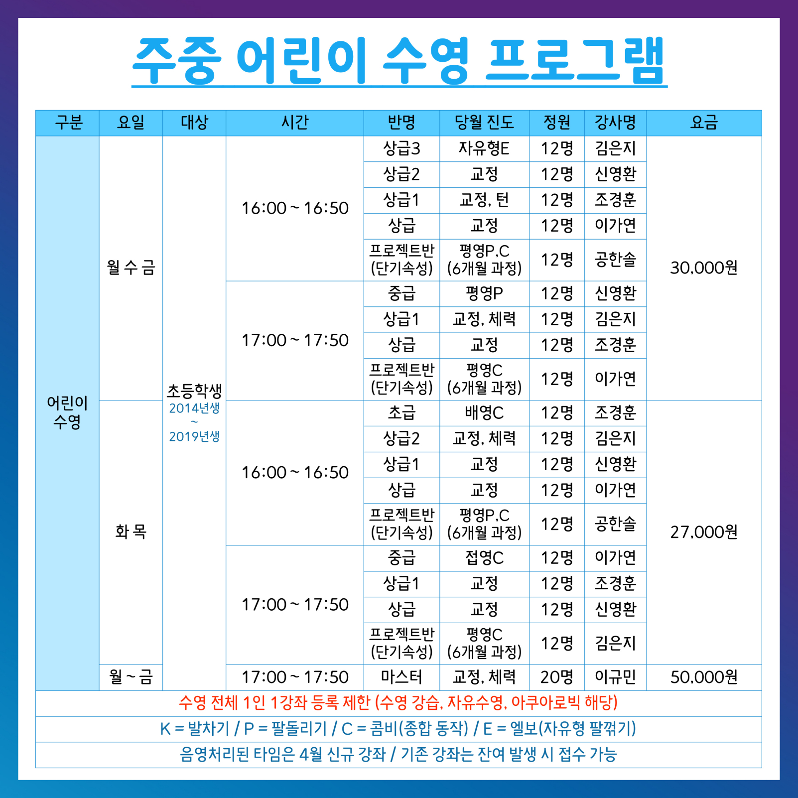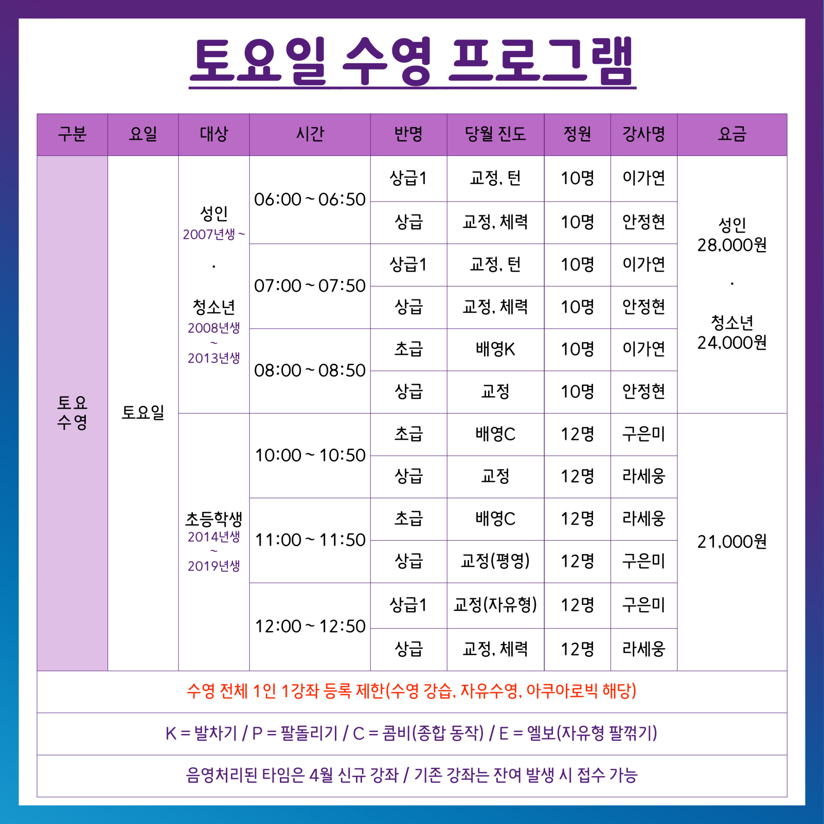 4월 수영 프로그램 운영 안내