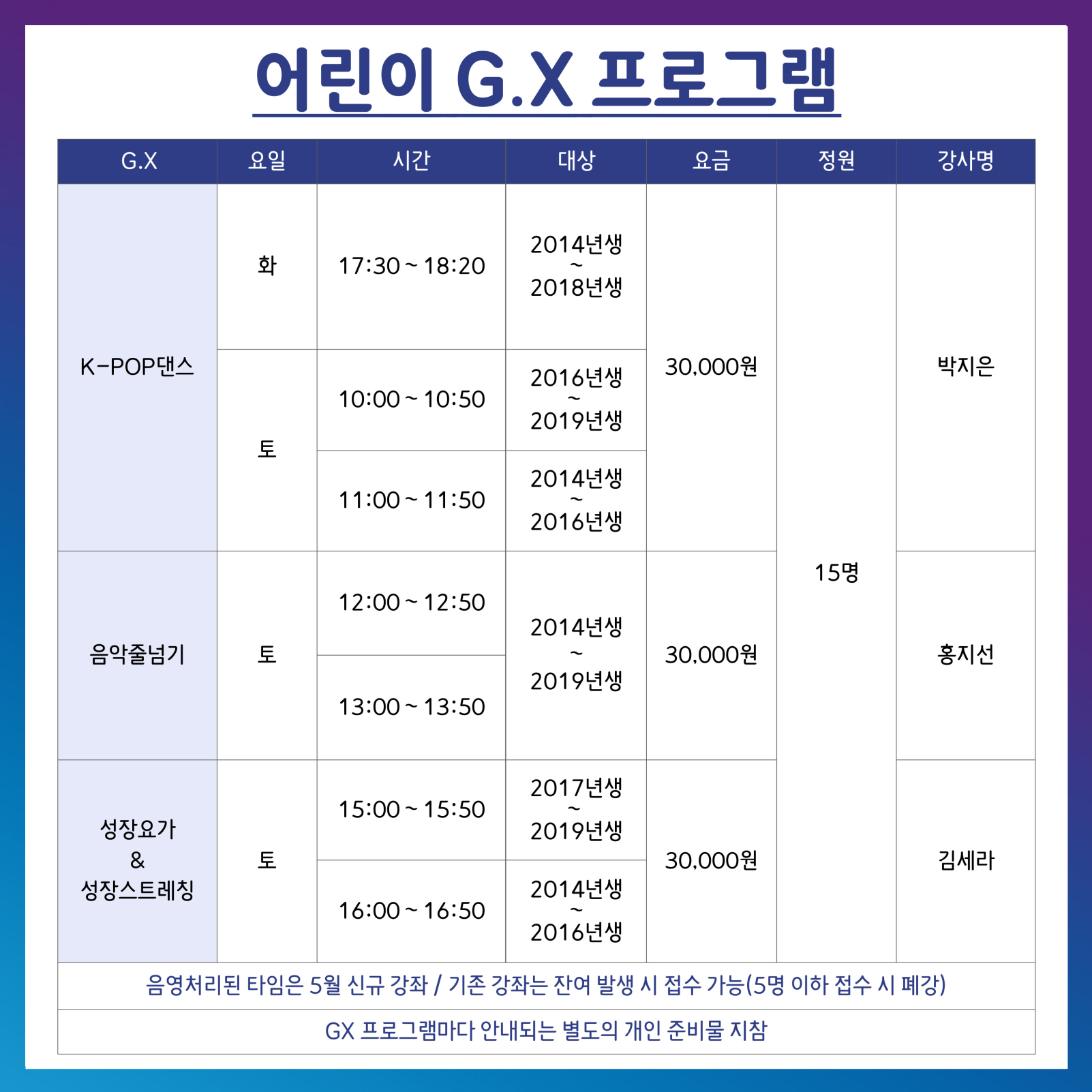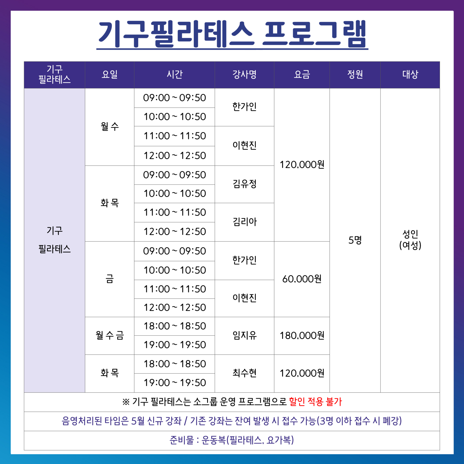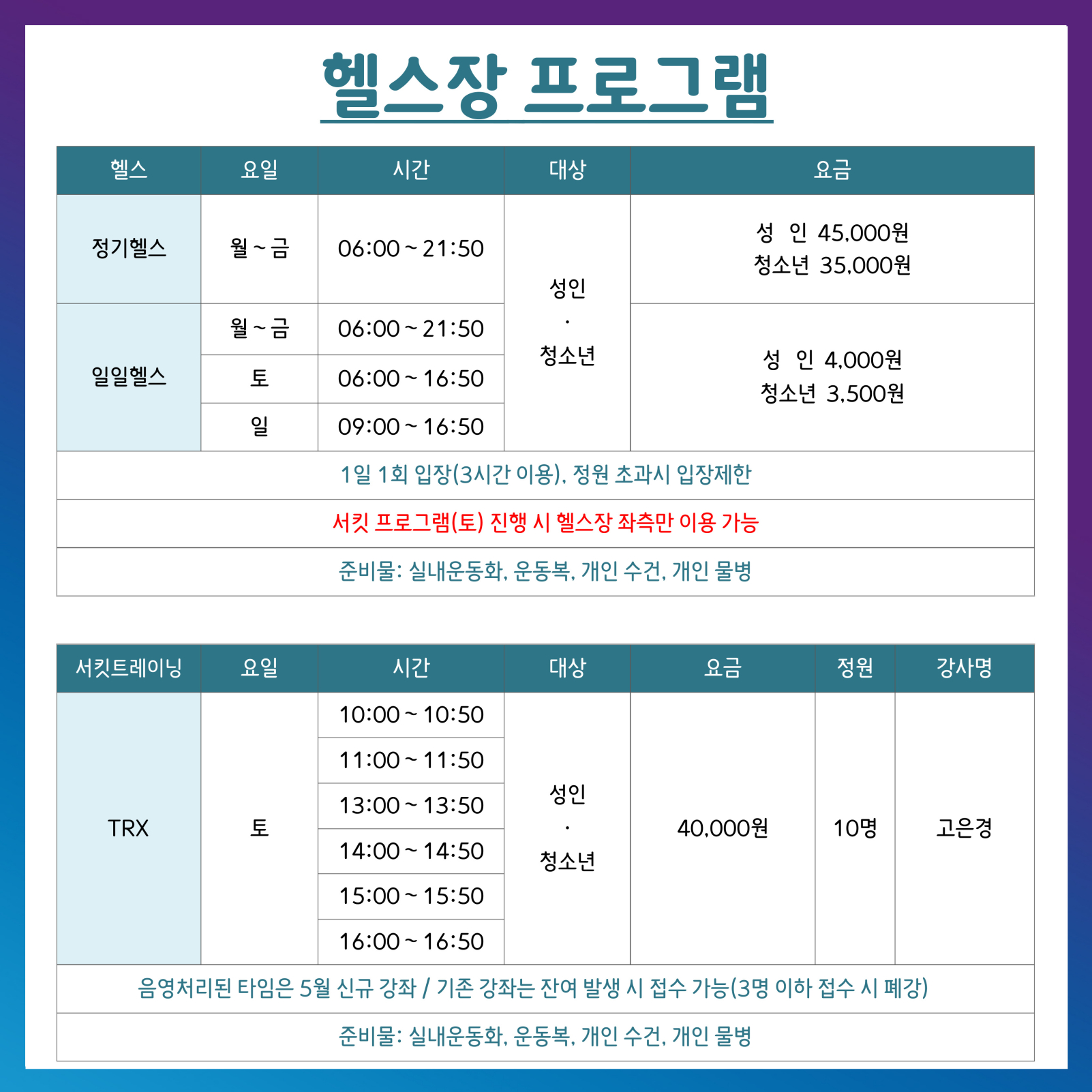 5월 1F 프로그램 운영 안내