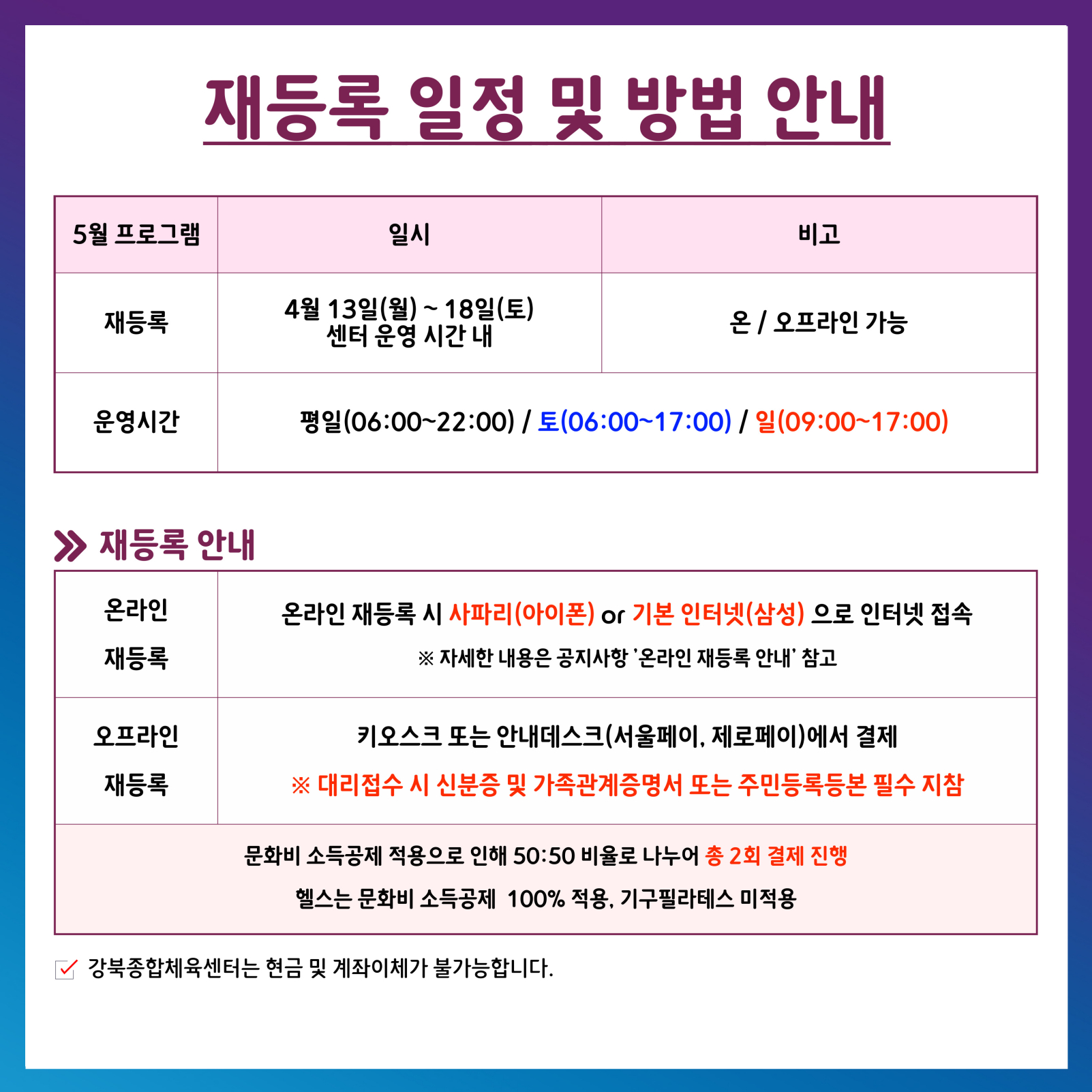 강북종합체육센터 차량 5부제 시행 안내