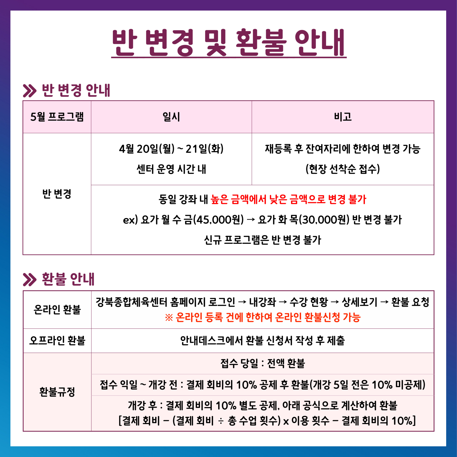 환불 및 연기 안내